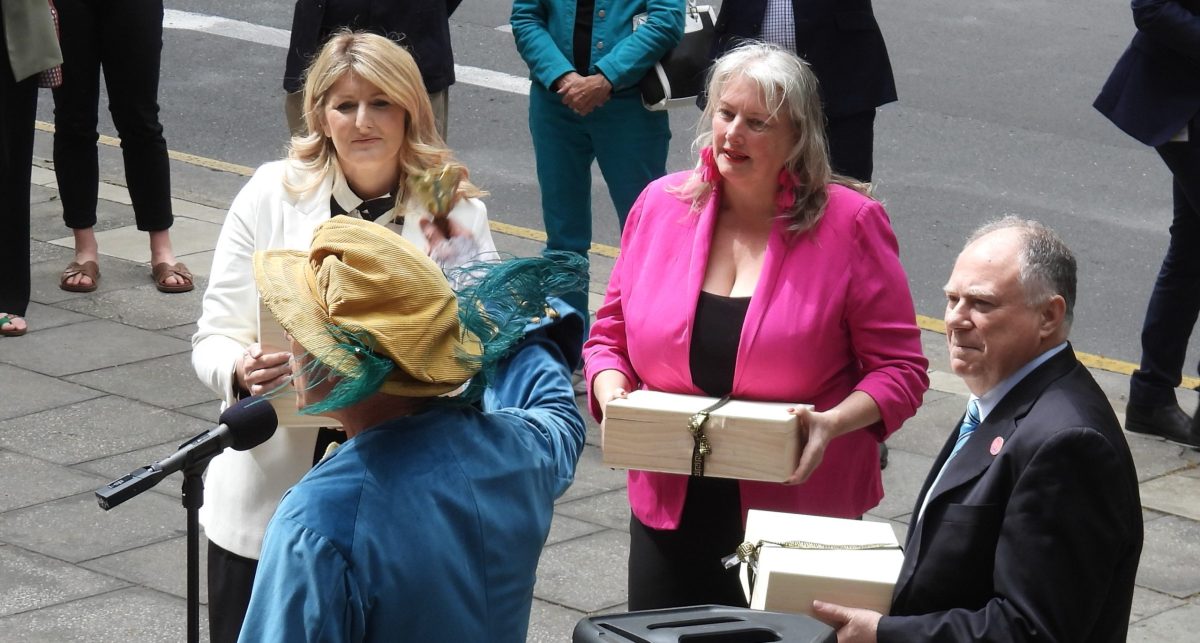 The Friends of Glenthorne National Park are proud to say that on the morning of November 13th, one of our local members of parliament, MP Erin Thompson, the member for Davenport, accepted the many boxes of petitions on the steps of Parliament along with Ian Hunter and Tammy Franks.